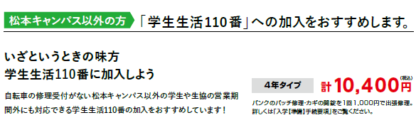 (「学生生活110番」は別途お申し込みが必要なサービスです。詳しくは