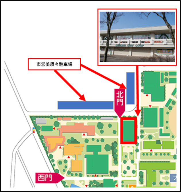 ※キャンパス内に駐車場はありませんので、公共交通機関または近隣の駐車場をご利用ください。
