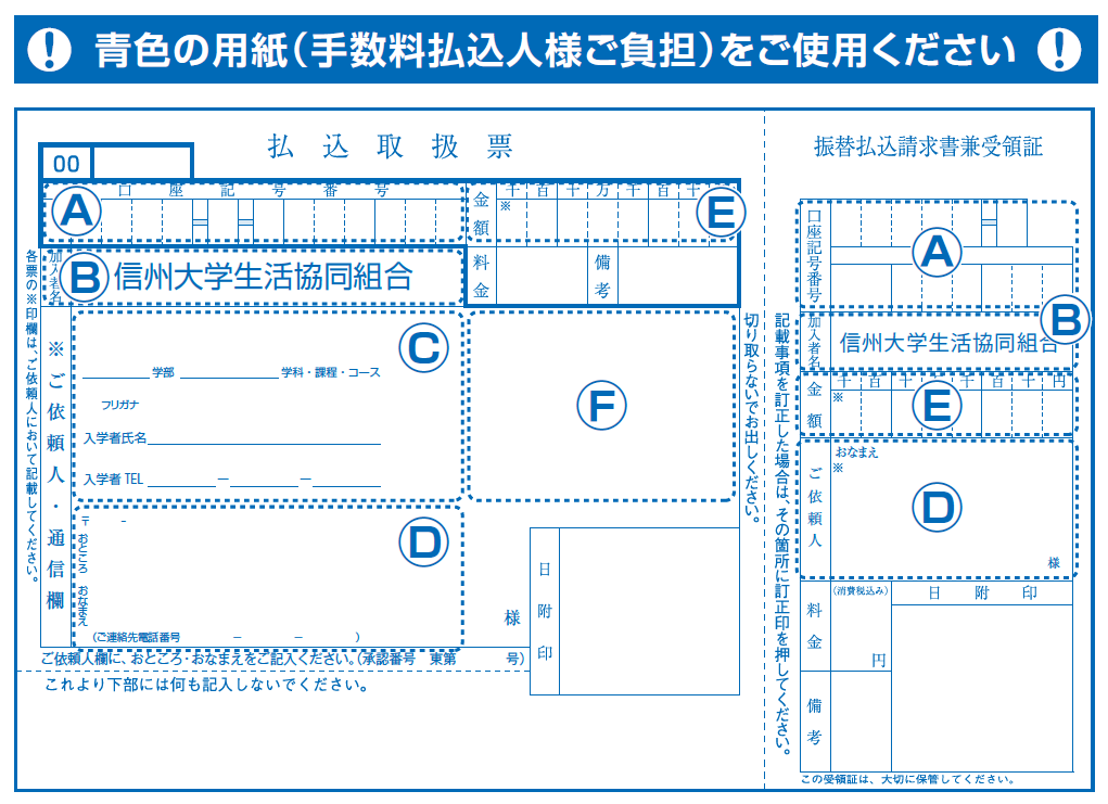 ご入学者様、お申込商品等の情報をご記入いただき、金額と口座番号にお間違いのないようお振込みください。