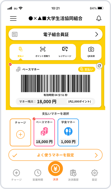 ・ポイント還元のためには生協加入が必要です。生協にご加入の上、大学生協アプリをインストールし、決済機能(Pokepay)を有効化してください。