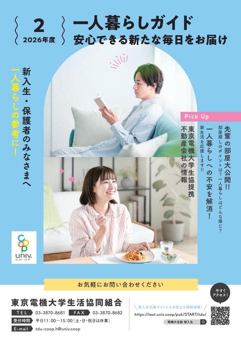 一人暮らし準備スタート 住まい相談会に参加して一人暮らしをしている電大生の先輩の経験・アドバイスを聞こう!提携の不動産屋さんをご紹介します。 |