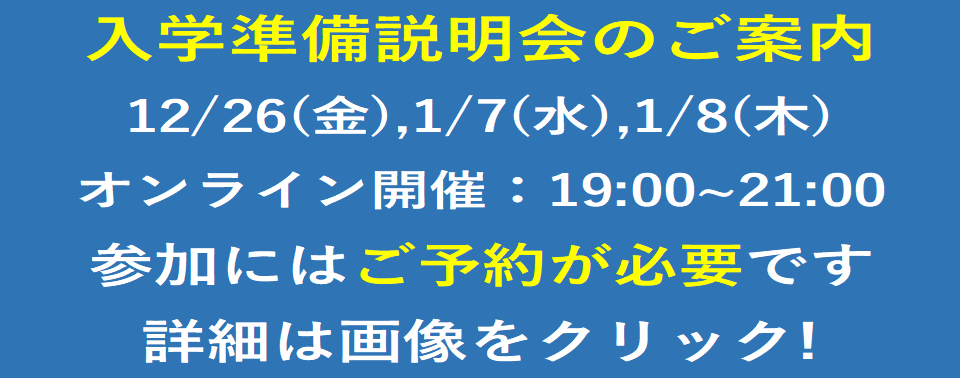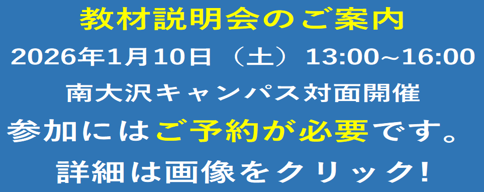 ご都合が合いましたら教材説明会(25年1月12日)3月に入学準備説明会などを