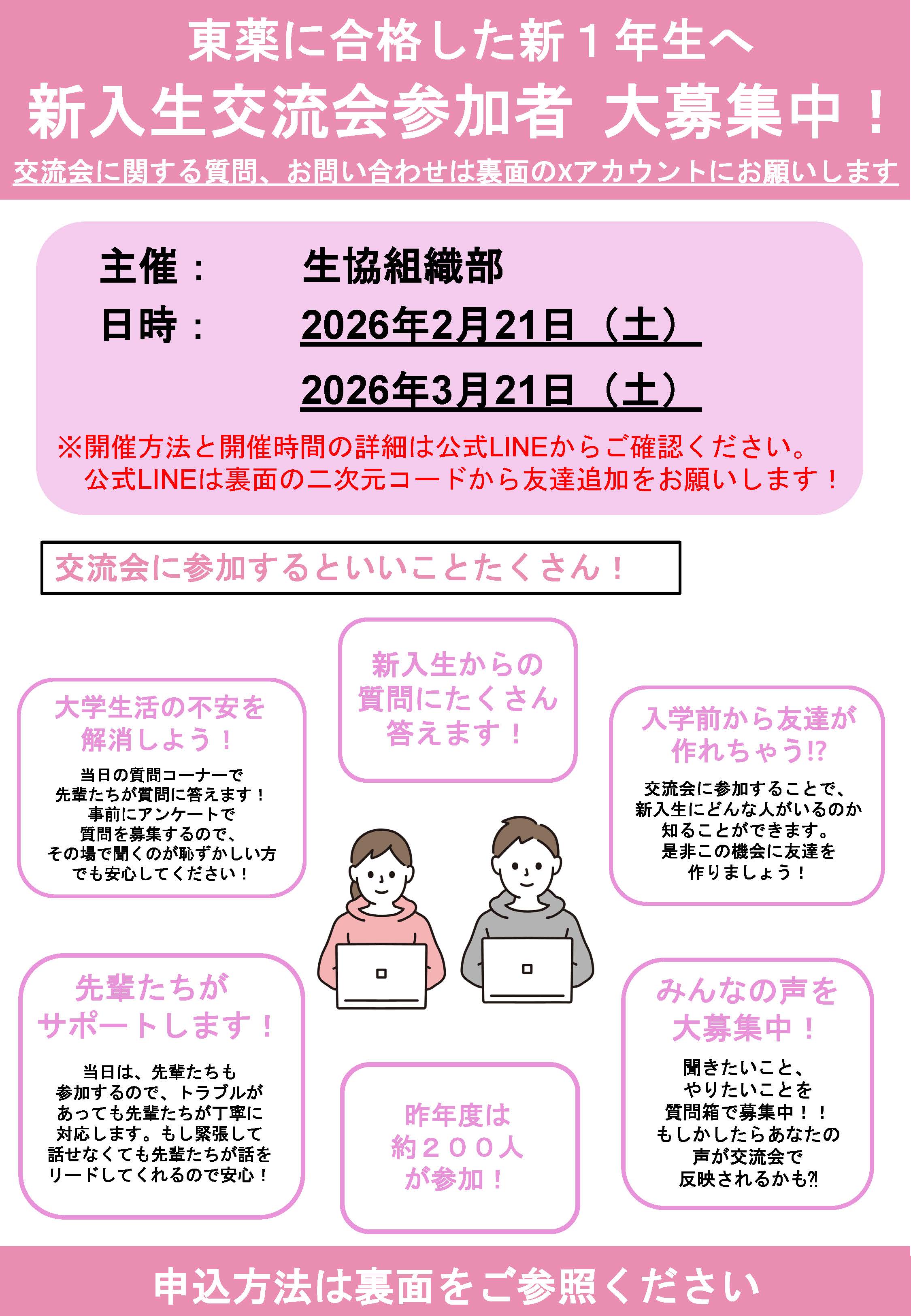 2026年度の新入生交流会は、オンラインでの開催となりました。