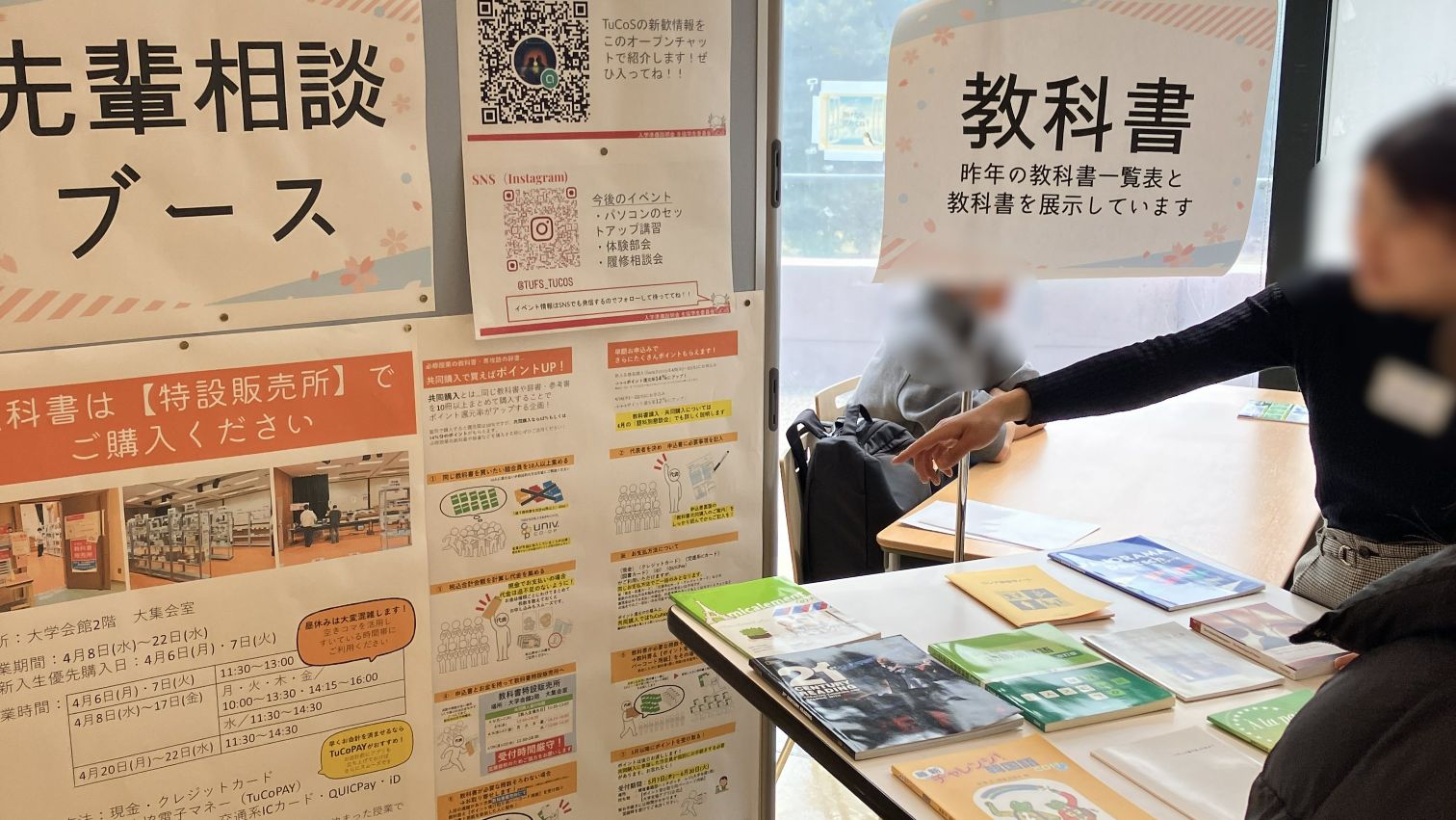 大学での教科書の買い方や、共同購入についてもご質問をいただき、先輩たちがひとつひとつご案内いたしました。
