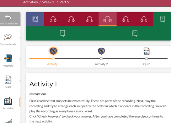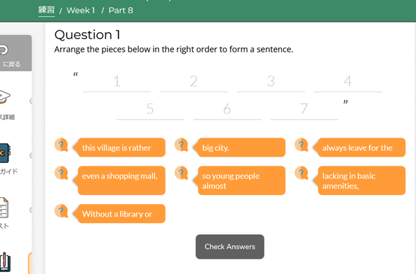 1.毎週(最低)2時間、英語で進む英語の講座