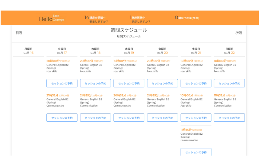 毎週複数回オンライン開講される2時間のレッスンは、すべてリアルタイムで進行します。急な予定変更で「いつもの曜日に受けられない!」という場合は、ワンクリックで別の曜日を予約でき、変更後のレッスンももちろんリアルタイム授業です。
