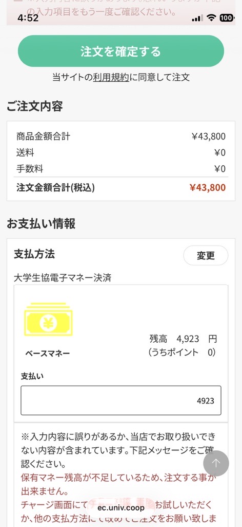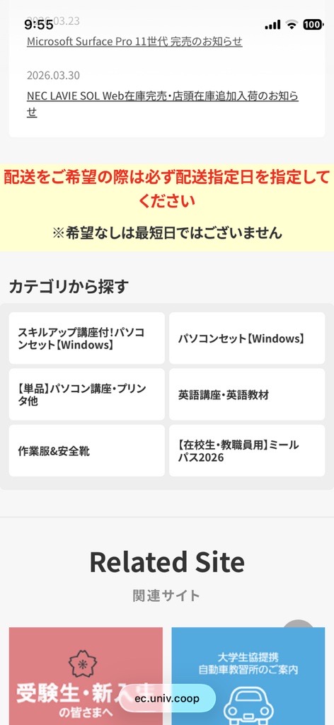 Web申込みが困難な方のみ申込書で受付、生協購買部での支払いとなります。