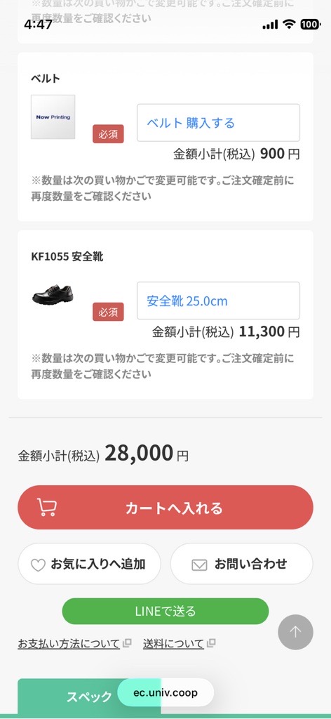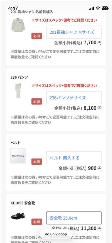 作業着・安全靴の購入期間以外の購入は原則不可です。