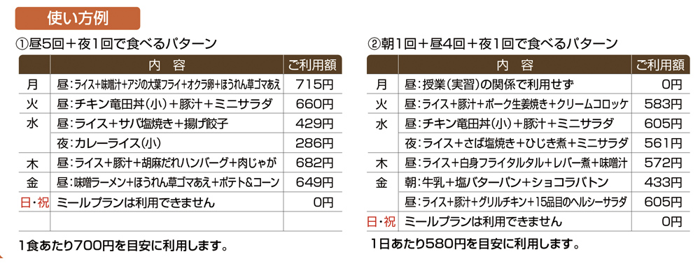 現金での利用だと、お小遣いを気にして「丼物1品だけしか選択しない」なんてこともありますが、ミールプランがあれば食事のバランスを考えて「ほうれん草のゴマあえ」などを追加することも出来ます。