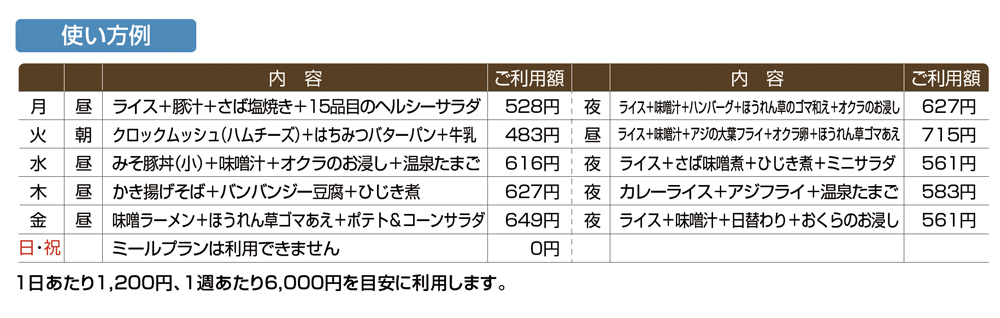 ※使い方例は、2025年10月現在のメニュー・金額です。変更になる場合もございます。