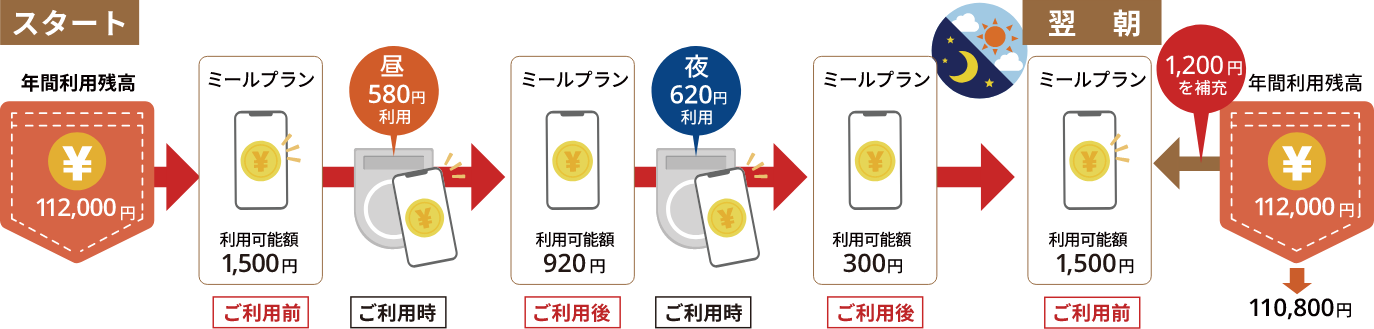 この1,500円は使い切る必要はありません。1日の利用額が、翌朝に年間利用残高から補充されるイメージです。