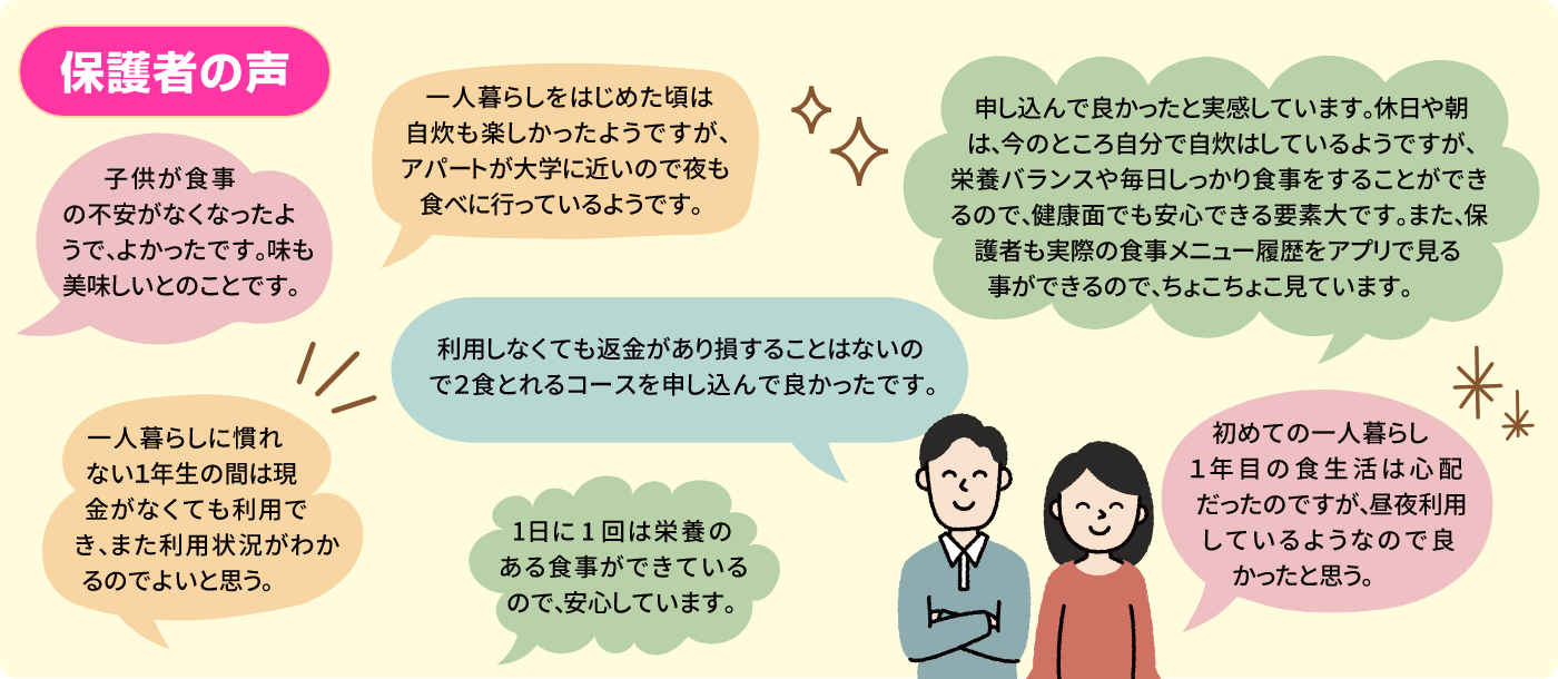 - ミールプランがあれば、手持ちの現金を気にせず利用できるので、食の幅が広がります。