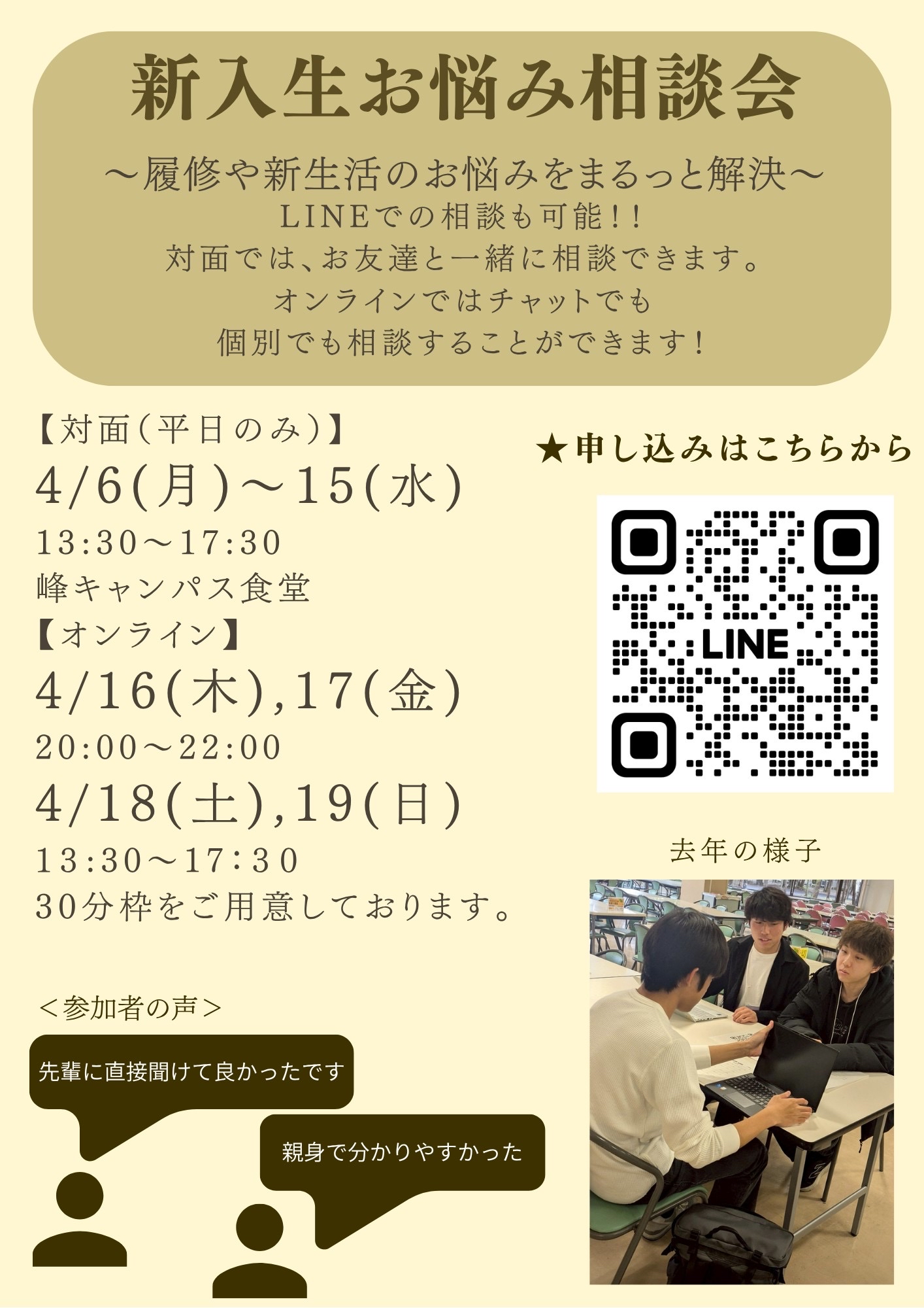 新入生お悩み相談会~履修や新生活のお悩みをまるっと解決~