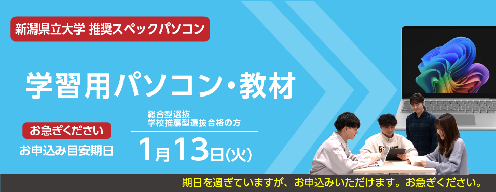 【総合型/学校推薦型選抜合格の方】新潟県立大学推奨スペックパソコン 期日は過ぎておりますが、お手続きいただけます。お早めにお手続き願います。