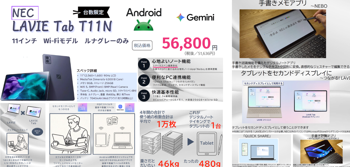 - 生協の安心NEC LAVIE Tab T11Nセット