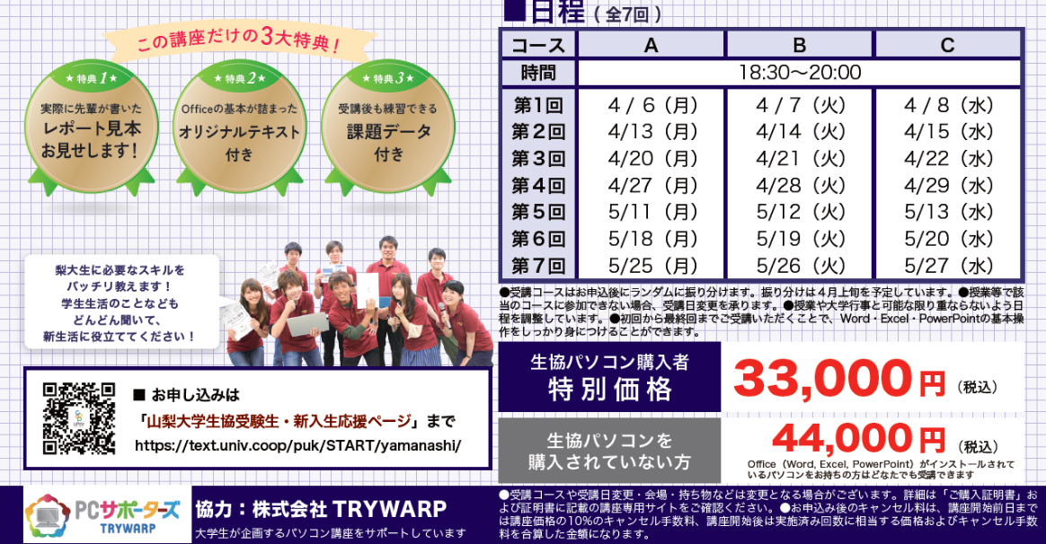 - PCセットアップ講習会にて「梨大で使える」ようにします!