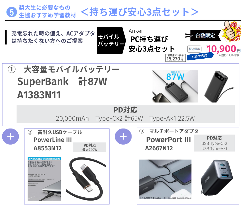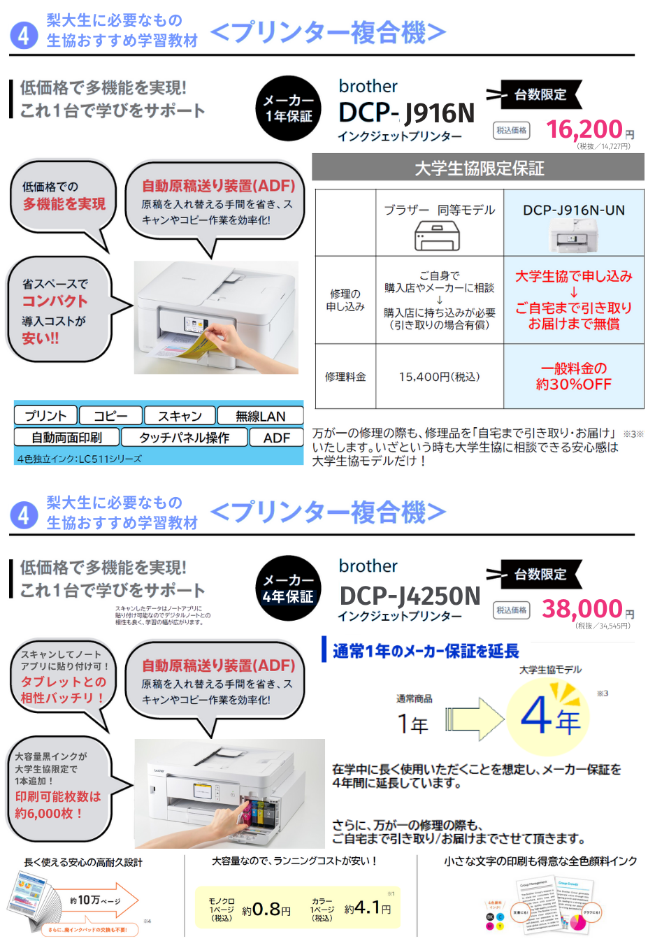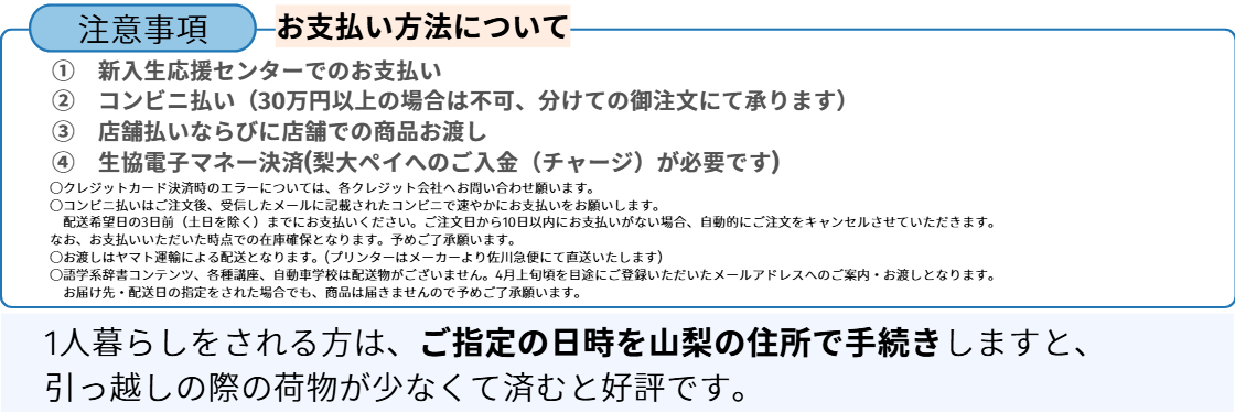 - 山梨大学生協 新入生サポートセンター購入サイトにて購入手続き