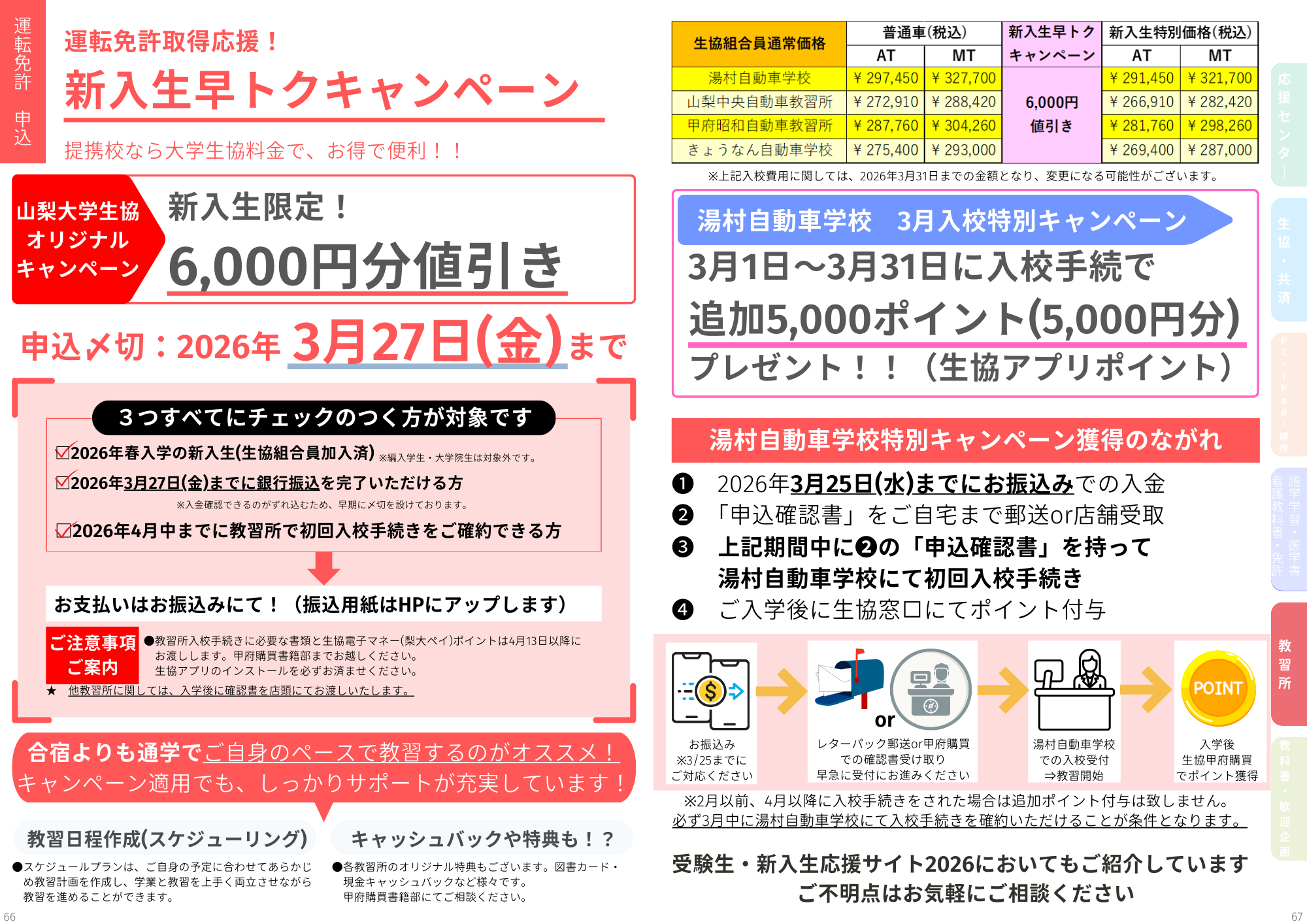 ※きょうなん自動車学校は、山梨大生限定週末合宿プランが魅力です。