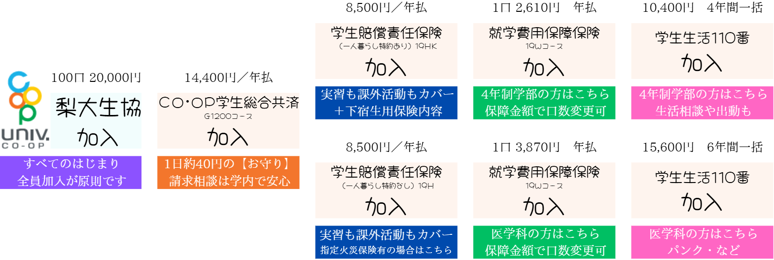安心して大学生活を送っていただける保障内容を【梨大生に合わせてプラン化】しています