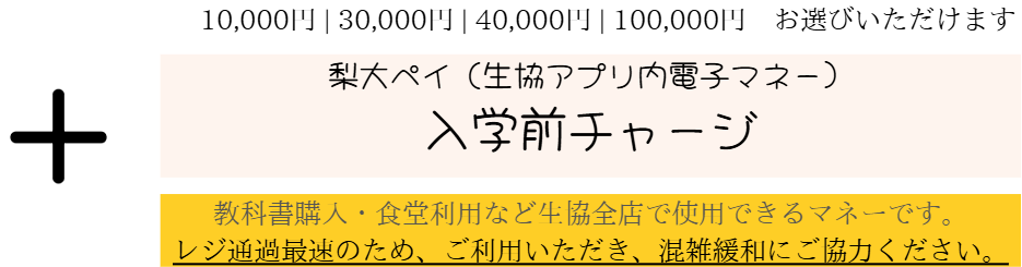 - 生協内で使用可能な『食』専用定期システム【梨大ミルパス】を導入いたします。