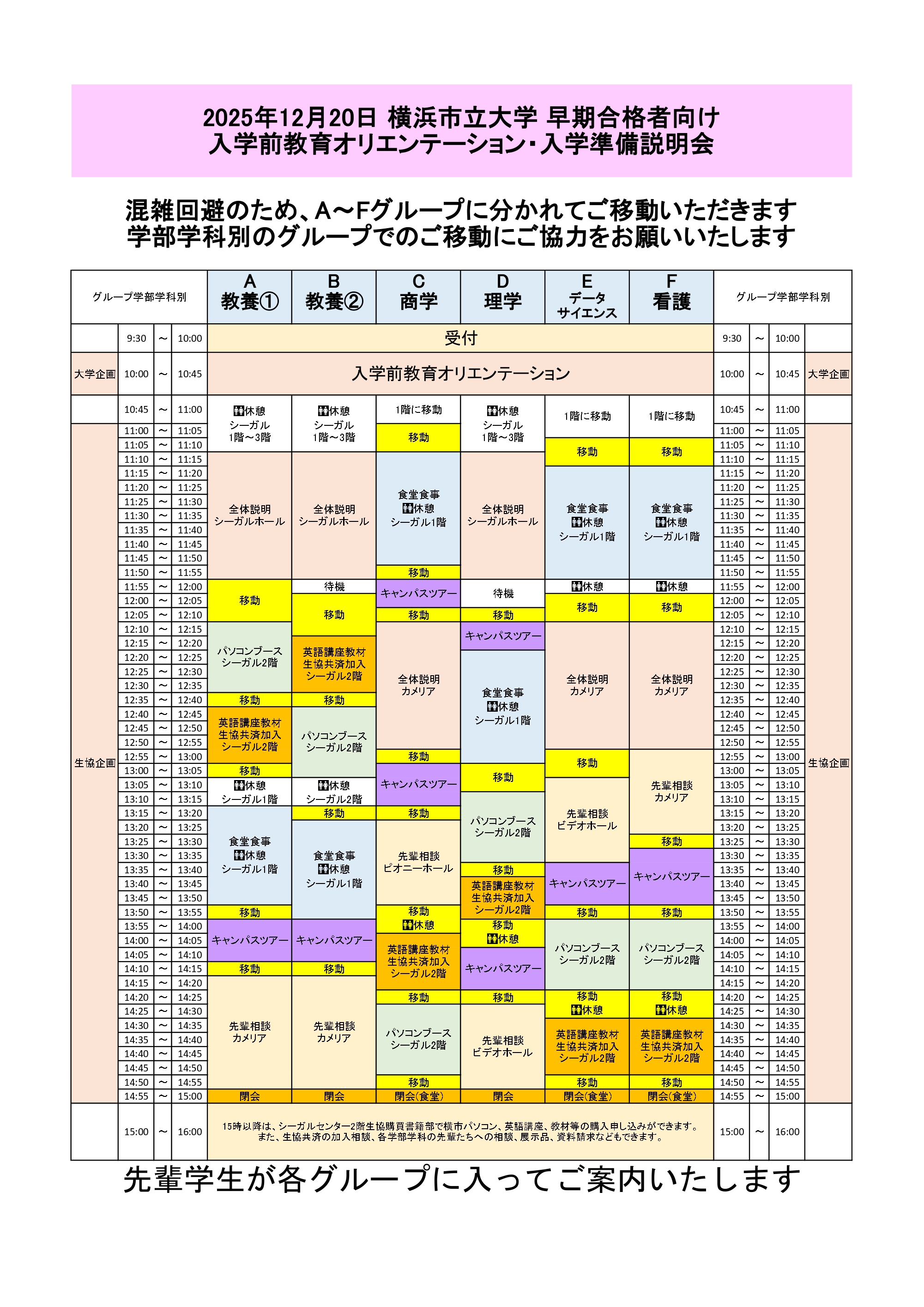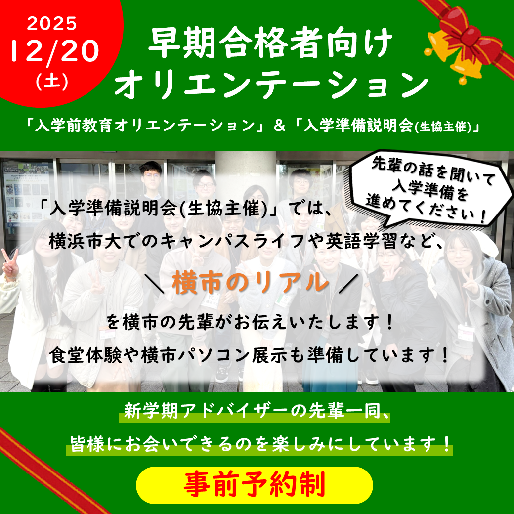 12月20日(土)早期合格者オリエンテーション・入学準備説明会