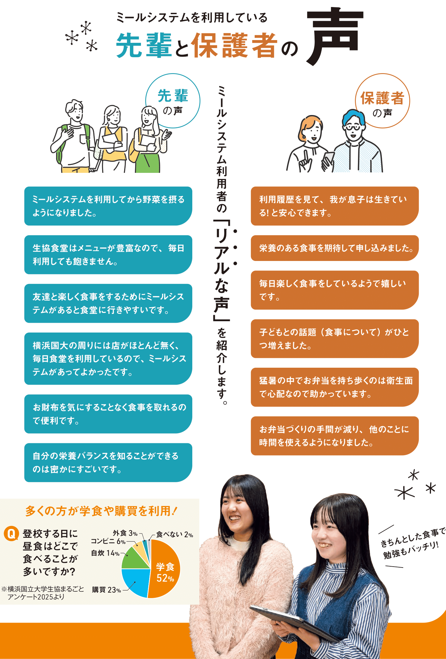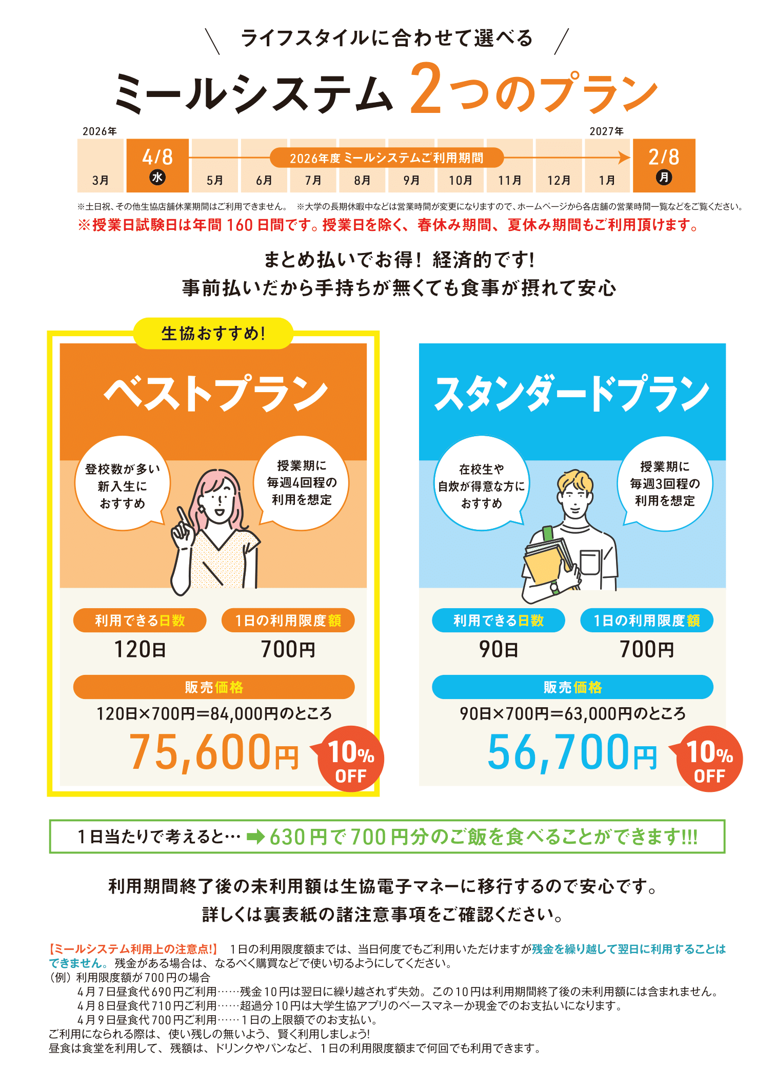 | 食の回数券 ミールシステムが安心で健康な大学生活をサポート |